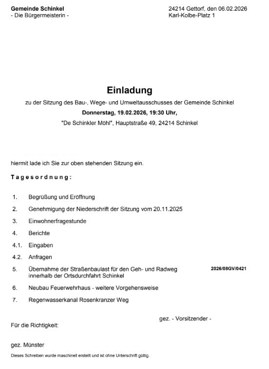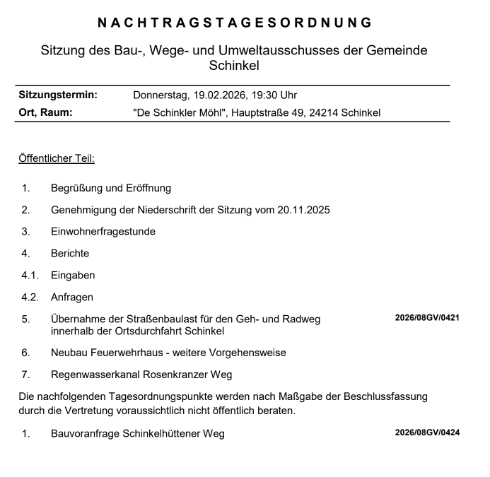 Sitzung des Bauausschusses der Gemeinde Schinkel, öffentliche Veranstaltung