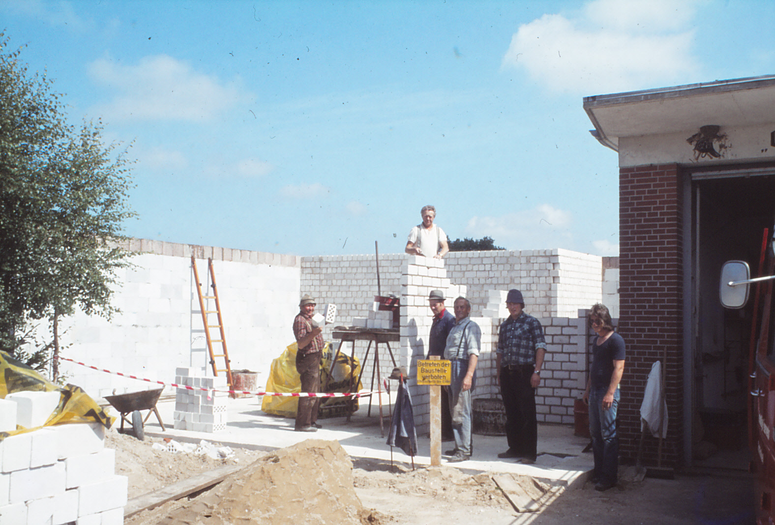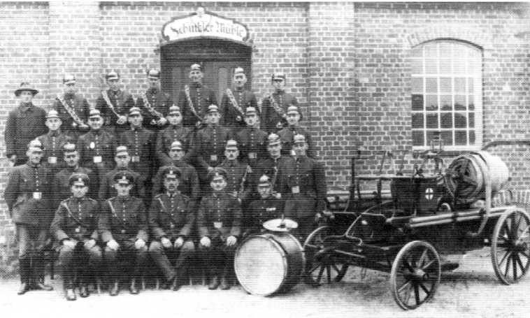Die Anfänge des Brandschutzes lagen eindeutig im Bereich des Gutes. 1889 wurde die Freiwillige Feuerwehr der Gemeinde Schinkel gegründet. Das erste Spritzenhaus lag in der Dorfmitte an der heutigen Haupstraße. Das Bild zeigt die Mannschaft 1935 vor der Gaststätte „Zur Mühle“. Das nächste Bild gibt das ehrenamtliche Engagement vergangener Zeiten beim Eigenbau des heutigen Feuerwehrgebäudes 1980 wieder.