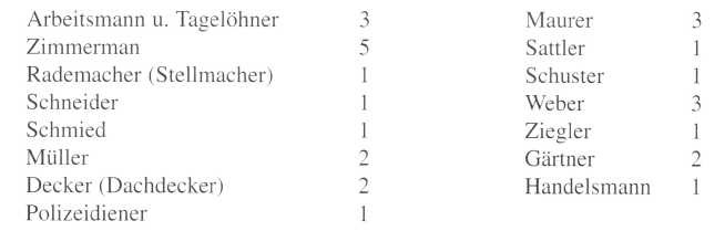 Nur langsam siedelten sich selbstständige Handwerksbetriebe an. Das obige Bild ist eine Auflistung der Berufe 1880 in Schinkel.