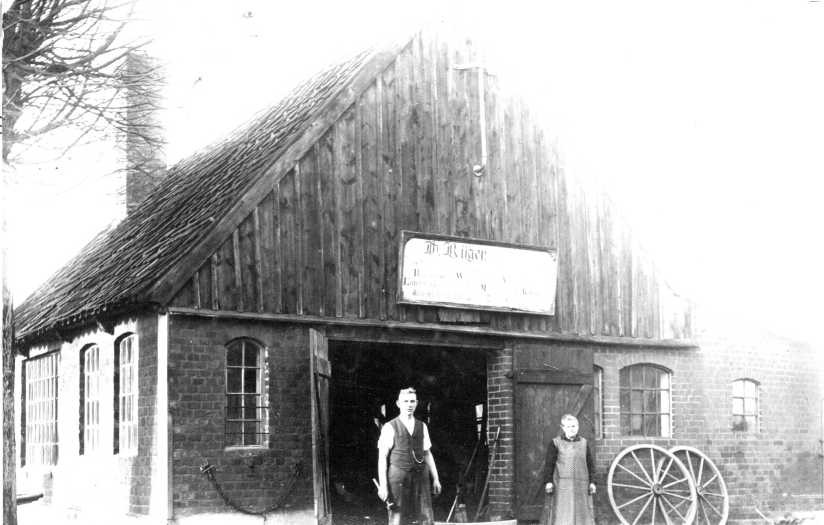 Um die Jahrhundertwende vermerkt die Chronik den Schmiedebetrieb Rüger an beiden Seiten der Einmündung der Raiffeisenstraße in den Rosenkranzer Weg; Schmiede, steht heute nicht mehr, und Wohnhaus (Raiffeisenstraße 49) wurden durch die Straße getrennt. Der Betrieb zog in den 1960er-Jahre in die letzte Meierei (Raiffeisenstraße 1).